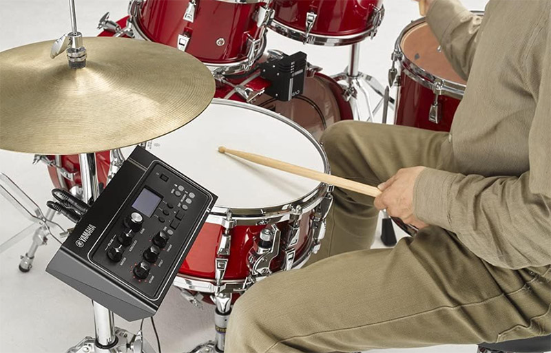 これはもう、アコースティックドラマーがハイブリッドを始めるならまずこれ一択でいいと言い切れるレベルの製品です!! センサーユニットをバスドラムのフープに挟むだけで、ドラムセット全体の音を拾ってくれます。